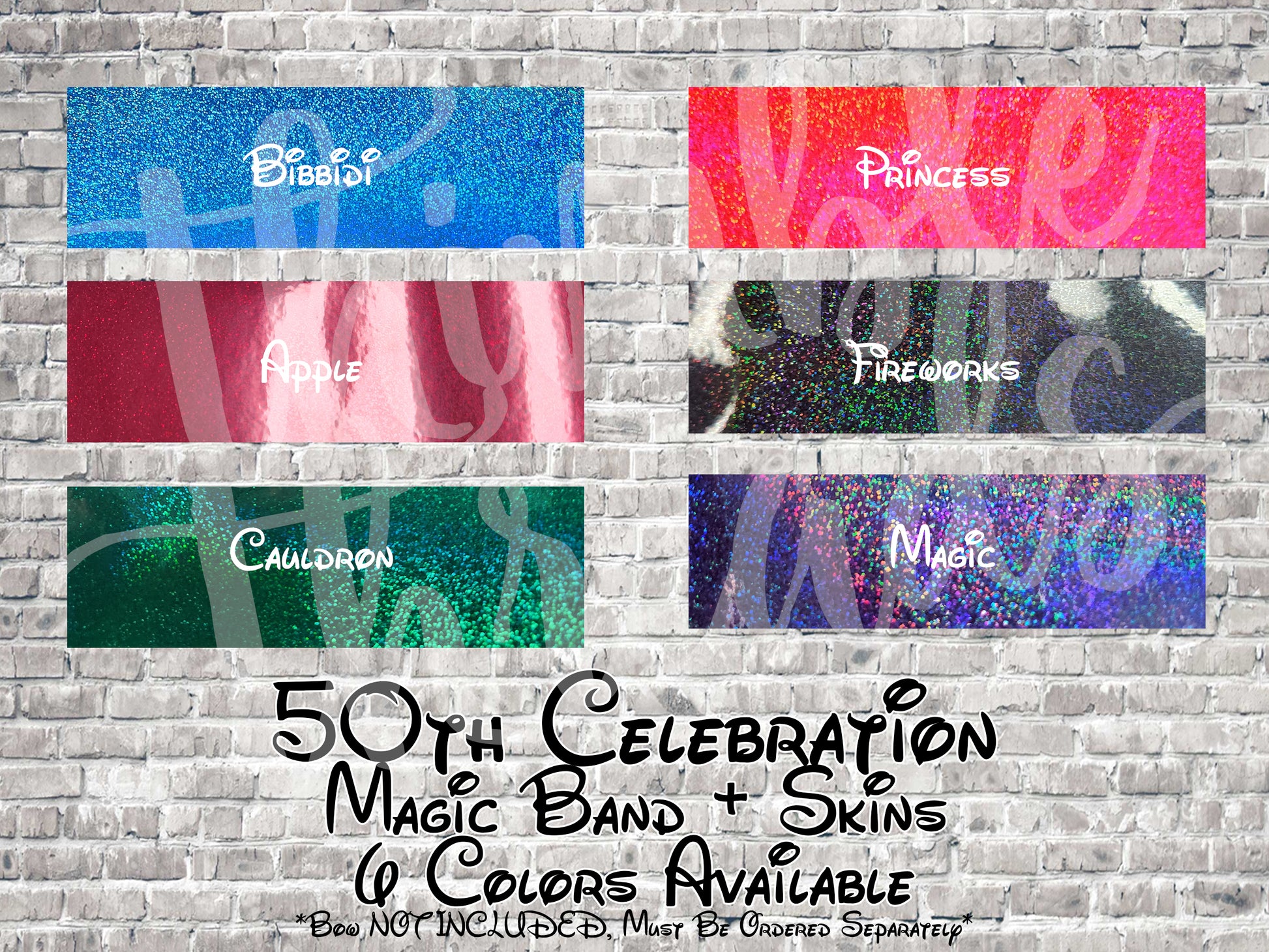 Celebrate in style with our 50th Celebration Shining Stars Magic Band + Decal Skin 3 Piece Wrap. Designed to capture the magic of a milestone celebration, this stunning wrap features a burst of shining stars and a subtle shimmer that makes your Magic Band + the perfect accessory for any anniversary event or park day.