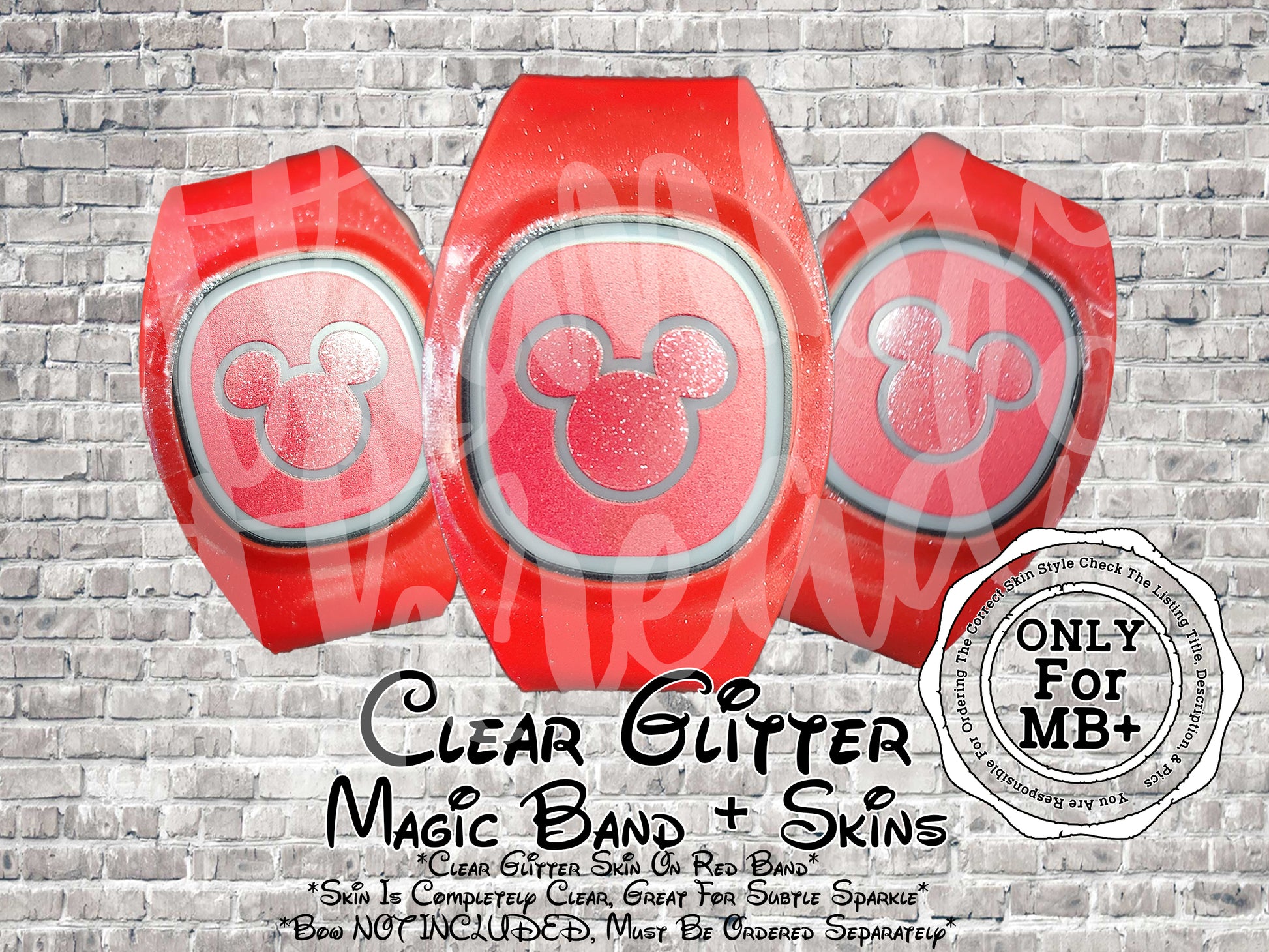 Clear Glitter Magic Band + Decal Skin Mouse Head ONLY