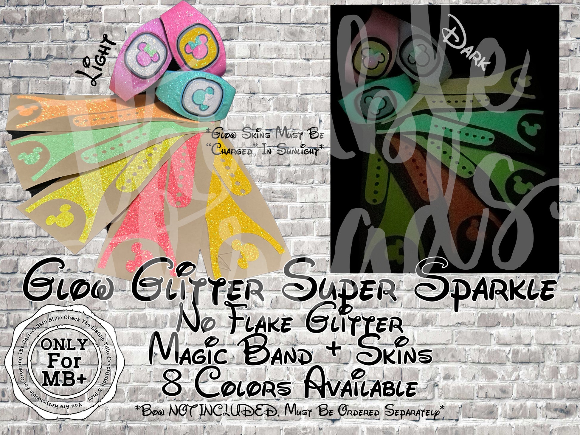 Glow Glitter Super Sparkle No Flake Glitter Magic Band + Decal Skin Bow ONLY