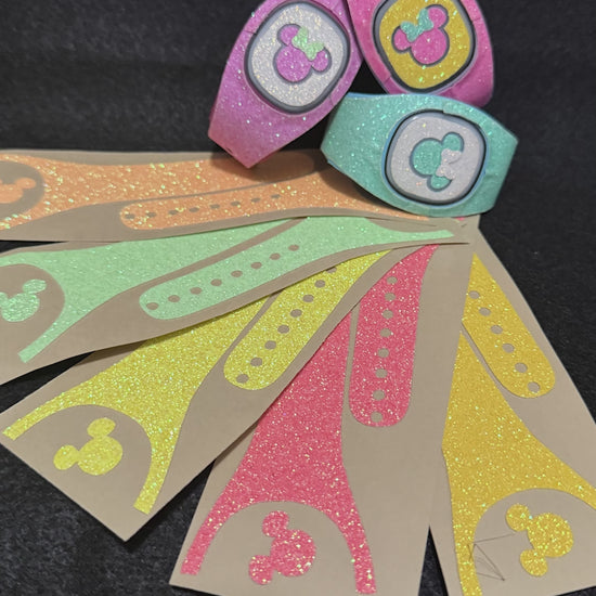 Shine bright from day to night with our Glow Glitter Super Sparkle Magic Band + Decal Skin Bow ONLY! This stunning glitter wrap delivers vibrant sparkle during the day and an eye-catching glow after dark. Perfect for dark rides, fireworks, and evening park strolls, these glowing wraps bring a magical, radiant touch to your Magic Band +.