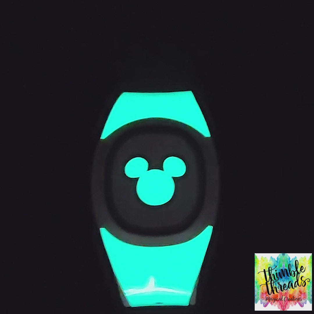 Light up your Magic Band with our Glow in the Dark Decal Skin Mouse Head ONLY!, designed exclusively for the center head! This glow-in-the-dark decal makes it easy to spot your band in low light, adding an enchanting glow perfect for nighttime adventures and thrilling dark rides.