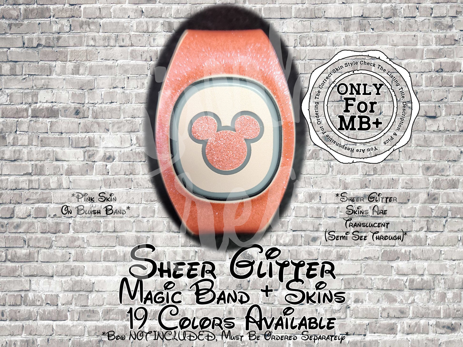 Sheer Glitter Magic Band + Decal Skin Bow ONLY
